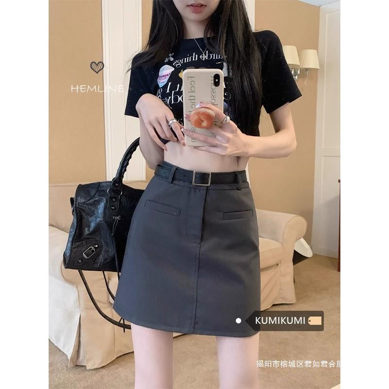 灰色のスーツの半身のスカートの女性の夏の2024の新型のヒップのスカートの小さい背の高い腰はやせているタイトなa字のスカートを現します。