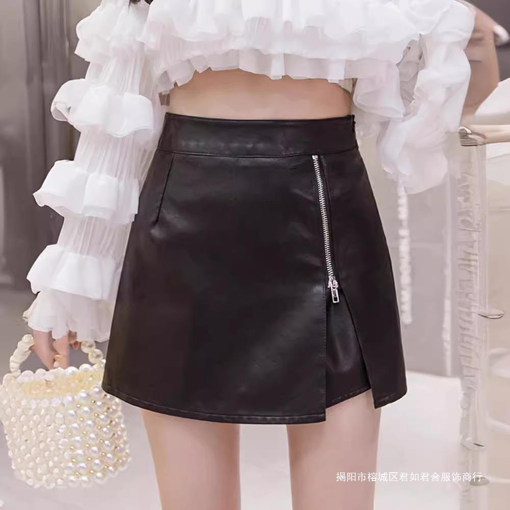 2023秋冬の小さい皮のスカートの半身のスカートの女性のファッションは不規則です。