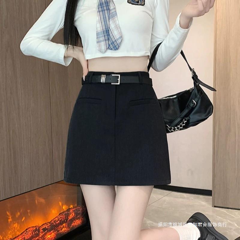 百パートナースカートレディース2023新作春秋スカートデザイン感ハイウエストa字jkショートスカート黒スリムスカート中东