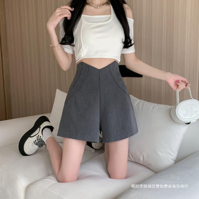 2024新型夏婦人服ハイウエストがやせて見えるヒップパンツの薄いA字のホットパンツのガードルの弾力性の短いカジュアルパンツ