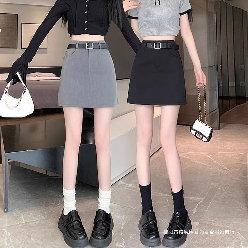 グレーの腰の高いスーツのスカートの女性の夏の2023新型の学院の風のギャルの百合のa字は尻の半身のスカートを包みます。