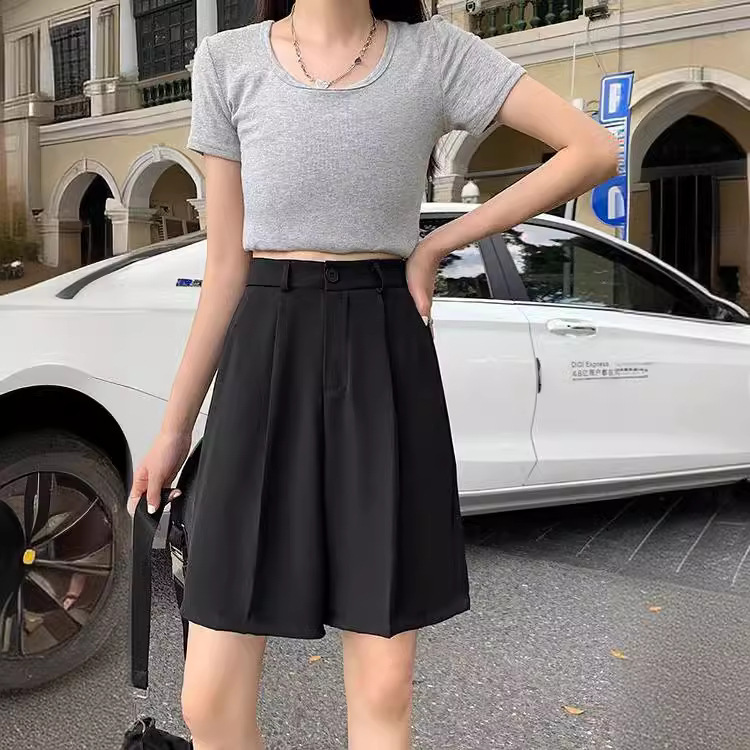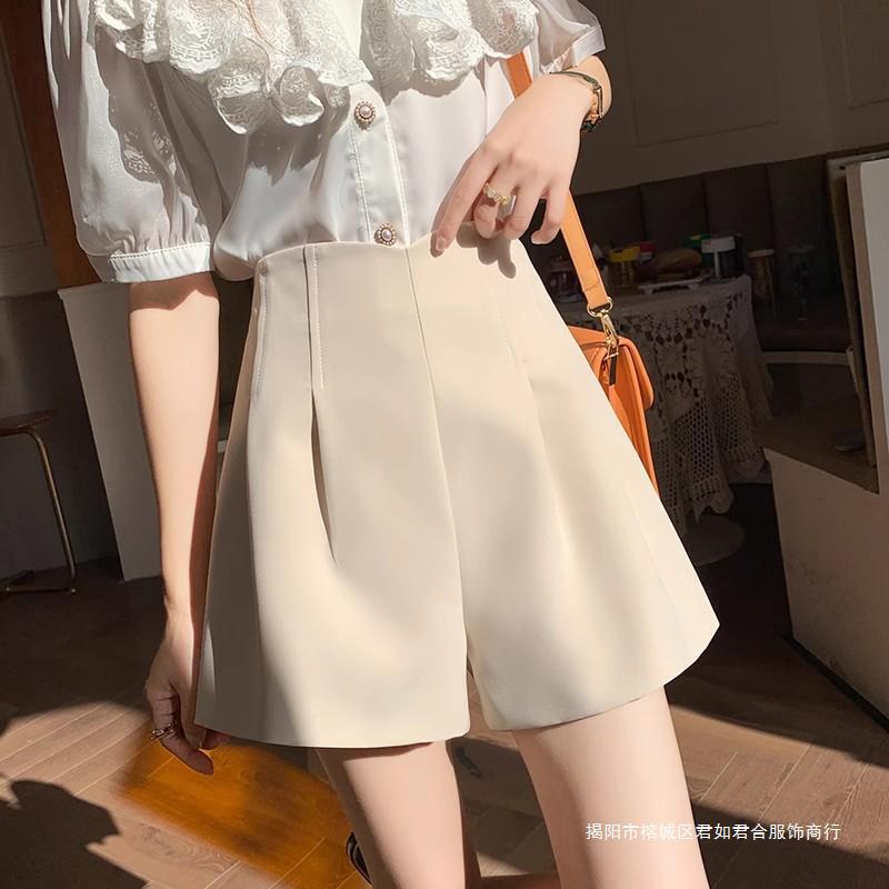 スーツの半ズボンの女性の夏の薄いタイプの2024ネットの赤い爆発の高い腰はやせている梨型の体つきのa字の広い足の短いズボンを現します。