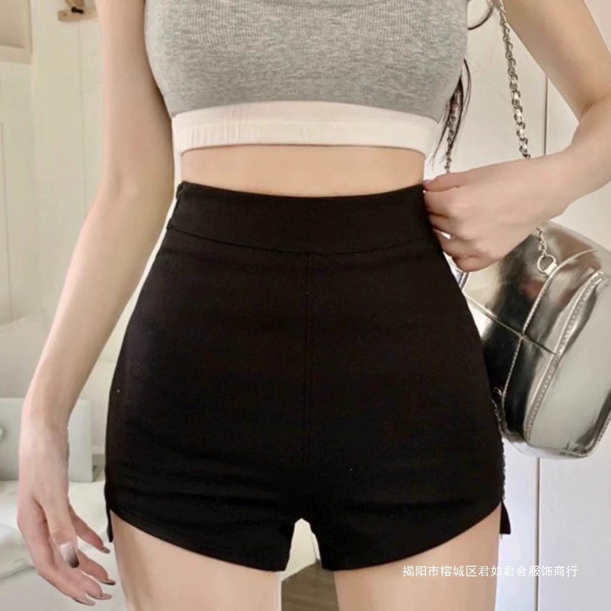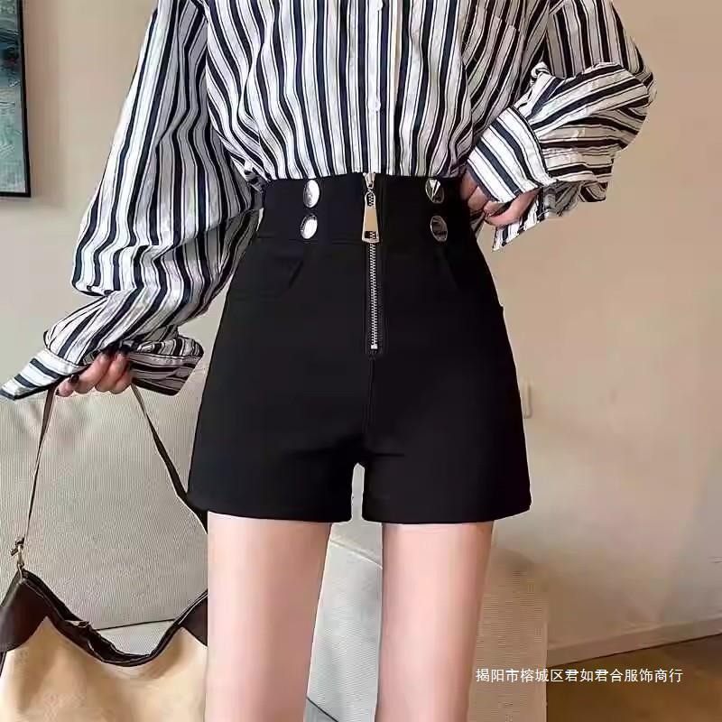大きいサイズの夏の2024の新型の韓国版の弾力性のA字の広脚の半ズボンの女性の高腰の修身はやせているギャルの熱いズボンの潮を現します。