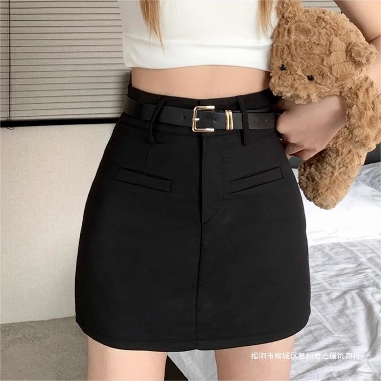 黒いa字の半身のスカートの春夏の2024の新型の高い腰はやせている弾力があります。