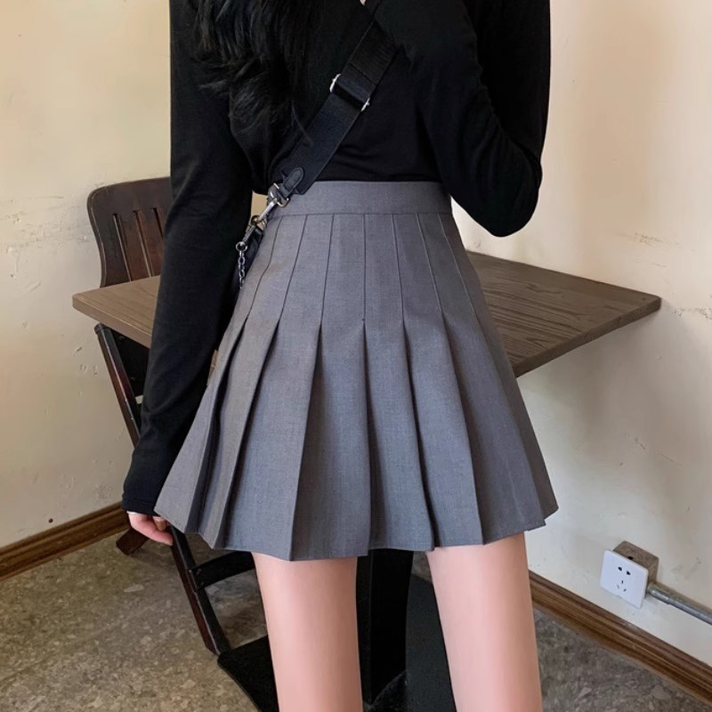 グレーのプリーツスカートの女性の夏の2024の新型の小さい背の黒いスカートのa字のjkの半身のスカートの秋の冬