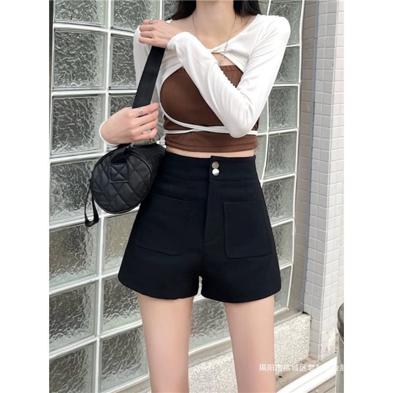 黒いスーツの底の半ズボンの女性の秋冬の新型の外は腰が高くてやせています。