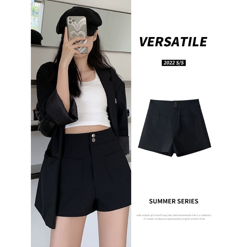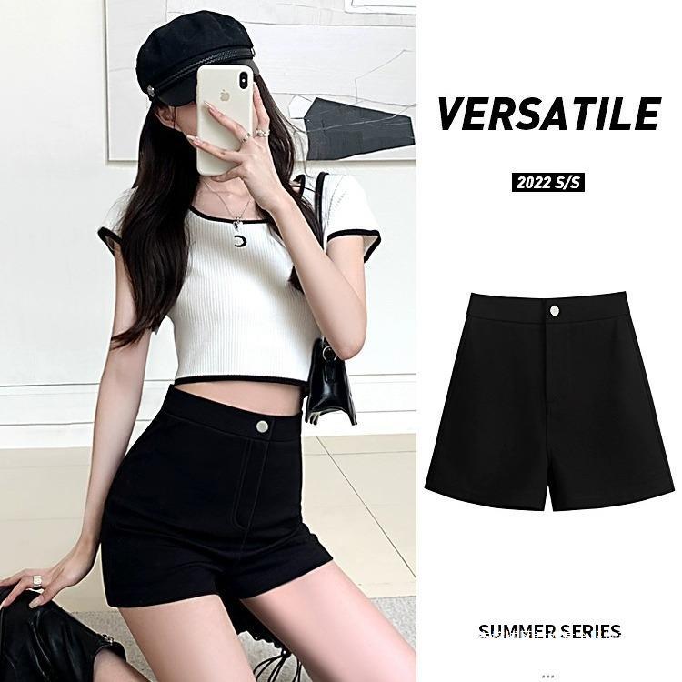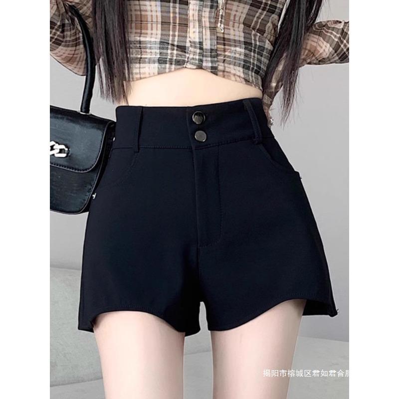 黒いスーツの半ズボンの女性の春の2024新型の小さい背の高い腰はやせています。カジュアルなa字のギャルの熱いズボンを着ます。