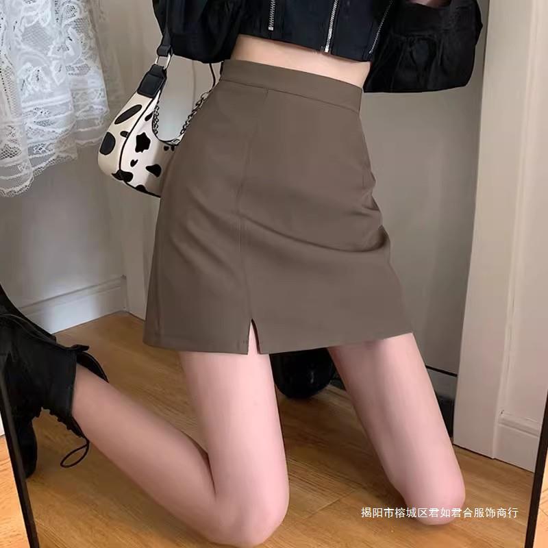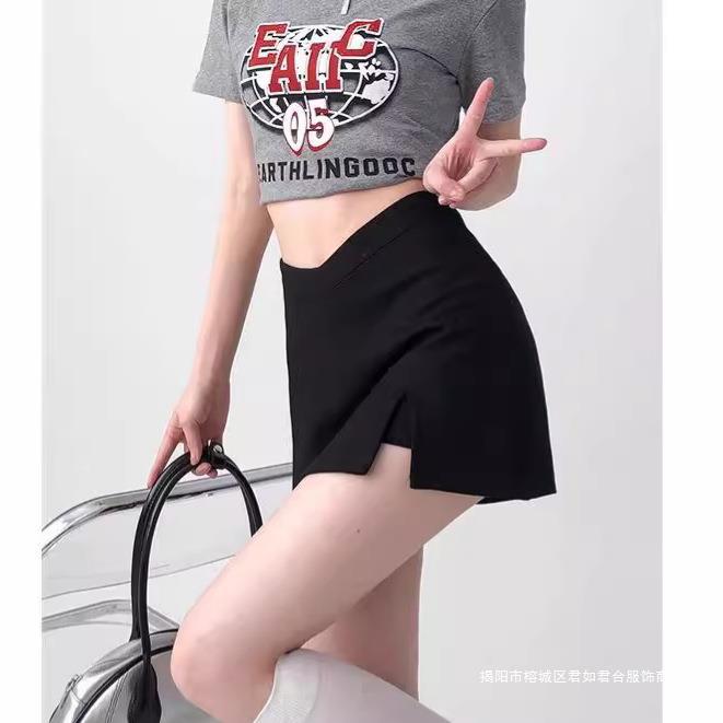 黒い半身のスカートの女性の夏の2024年の新型のファッションの高い腰の修身の弾力性はフォークのa字のお尻の短いズボンのスカートを包みます。