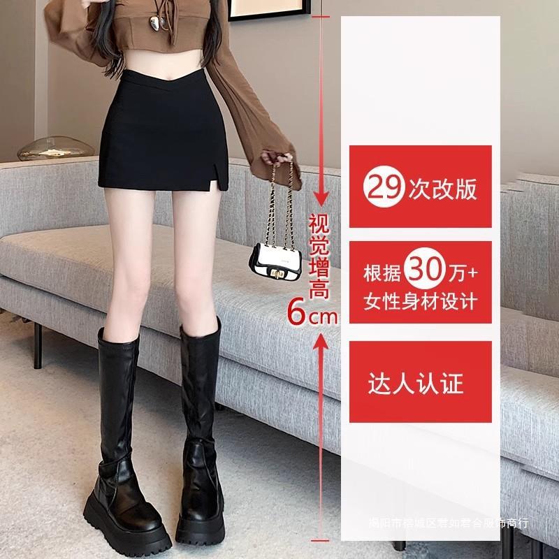 黒のスカートの女性の春秋2024の新型の高腰はやせて肉の夏のズボンのスカートを遮って尻のスーツのa字のスカートを包みます。