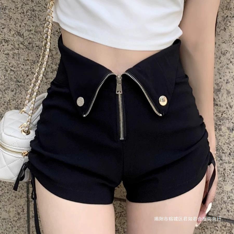 超高腰紐黒半ズボン女性秋冬ギャルデザイン感小衆小背a字超短熱ズボン潮