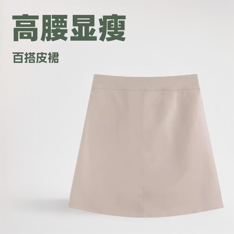 秋冬のa字の黒い小さい皮のスカートの半身のスカートの女性の高腰の150小さい背のpu皮の気質の名媛は尻のスカートを包みます