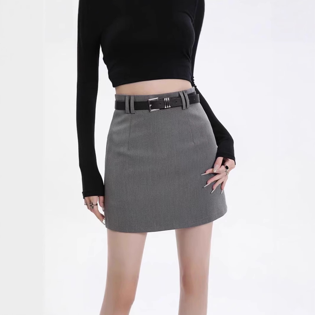 グレーハイウエストスーツスカートショートスカート2025春夏新作アメリカンヒップカバースカートAラインセクシーで万能なスカート