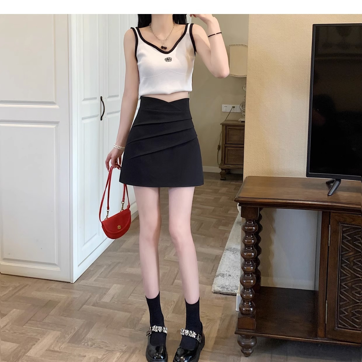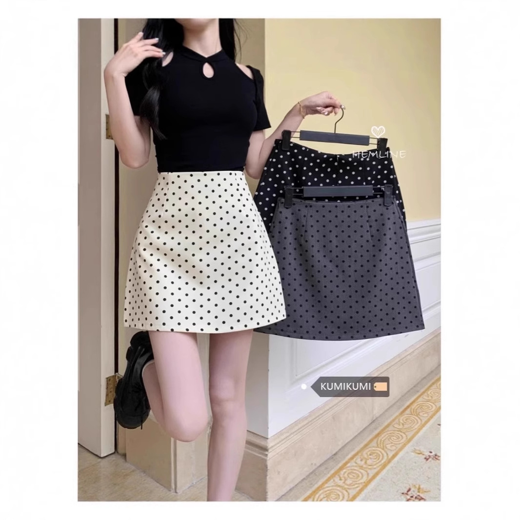 スイートガールブラック水玉スカートヒップカバースカートレディース夏2025新作ハイウエストスリムAラインスカートショートスカート