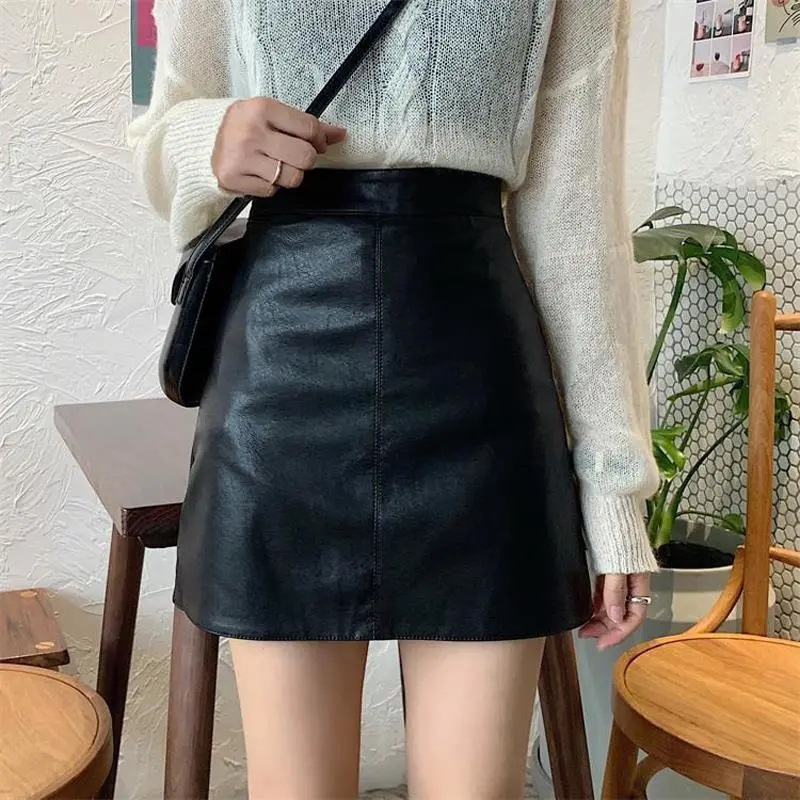 小さい皮のスカートの女性の2024秋の韓国版のpu皮のスカートの半身のスカート