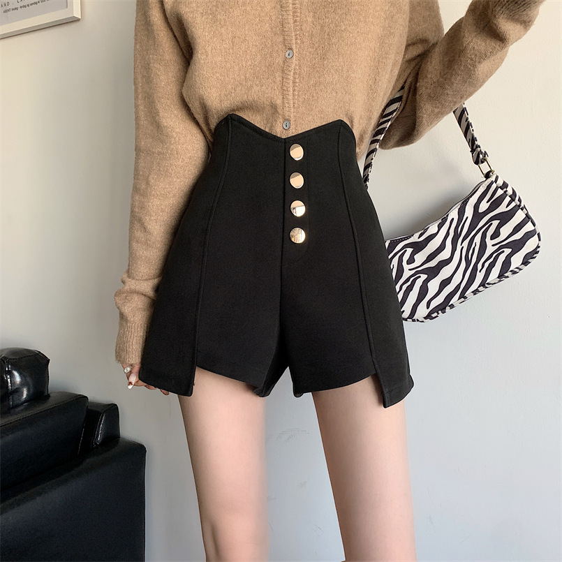 2023夏の新型デザイン感高腰半ズボンのボタン飾りが痩せています。