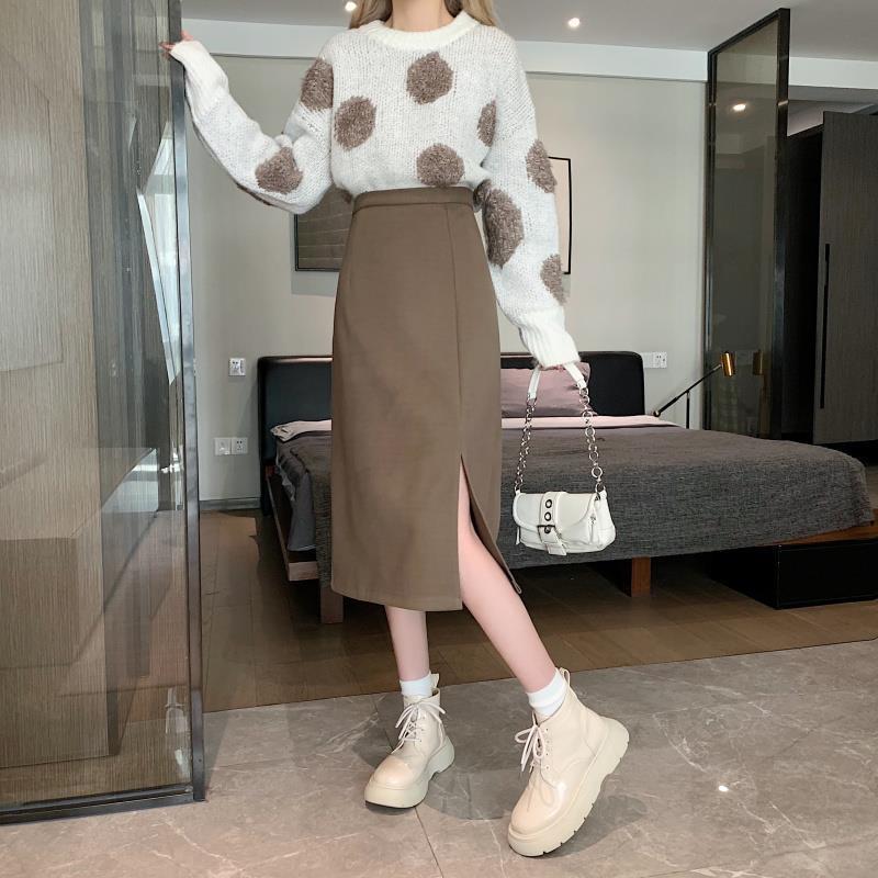 大きいサイズの太ったmmの半身のスカート2023秋冬の新型の高腰は長いタイプのa字のスカートを開けて痩せています。