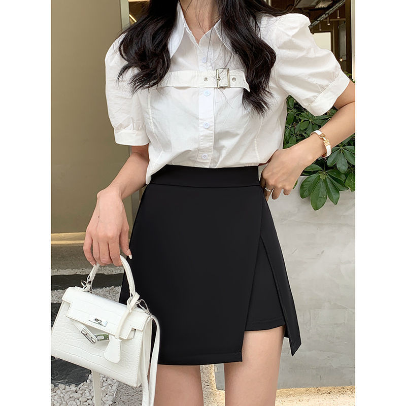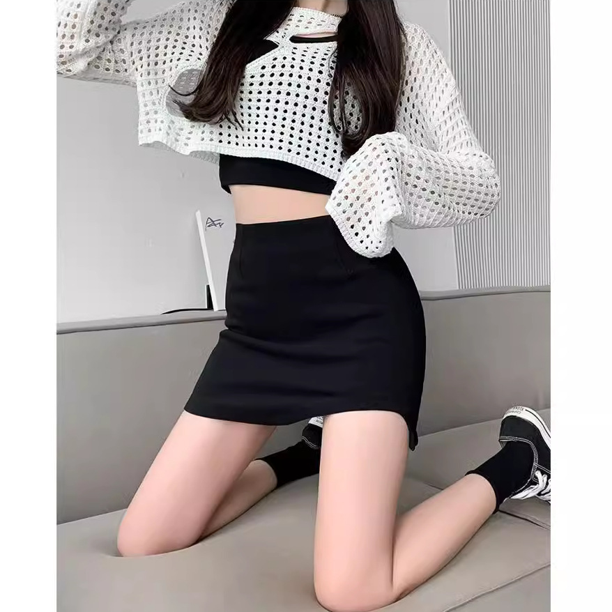 黒のオープンスカートの女性春夏2024の新しい不規則なスカートの微太り防止の光のスカートのズボンはお尻のスカートを包みます。