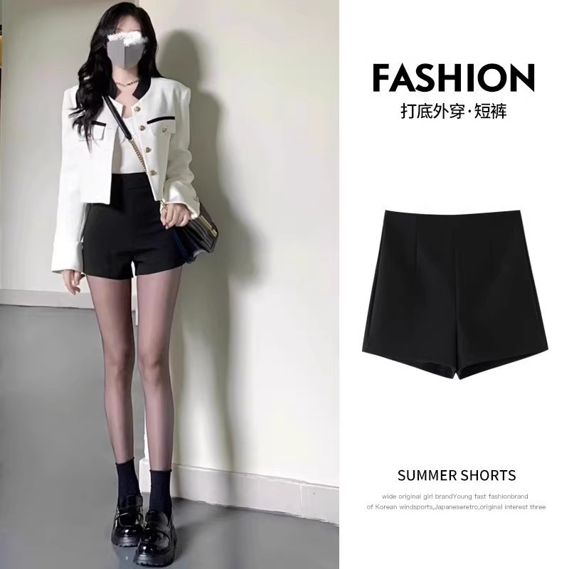 黒い半ズボンの女性2024の新型の爆発金は春と秋に痩せています。
