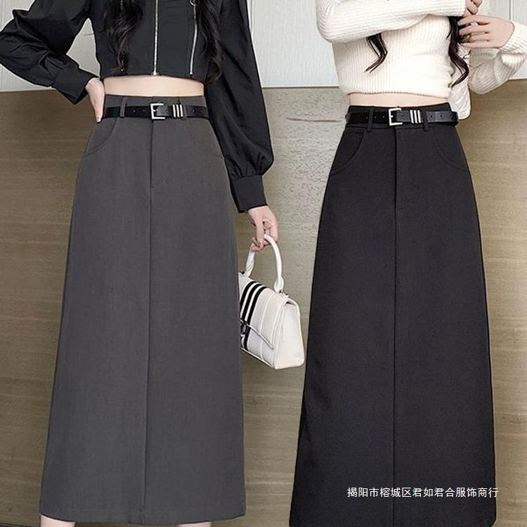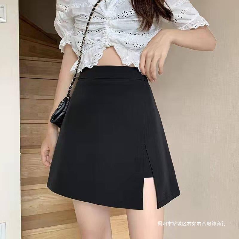 気質のスーツの半身のスカートの女性の2024の新型の春秋の爆発の高い腰はやせているa字のオープンフォークの気質の百合のスカートを現します。