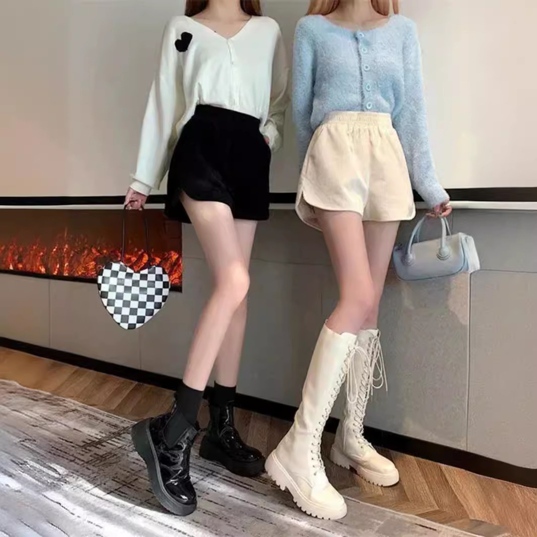 コーデュロイa字ショートパンツ女性2023年秋冬新作ゆるい着痩せワイドパンツとブーツのカジュアルパンツ