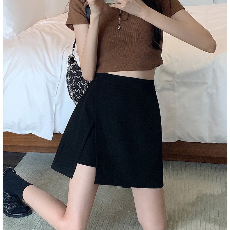 黒いa字のスカートは腰が高くて痩せています。