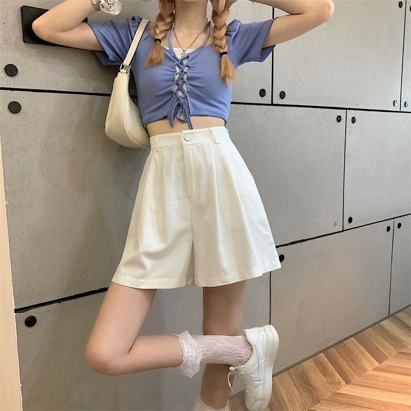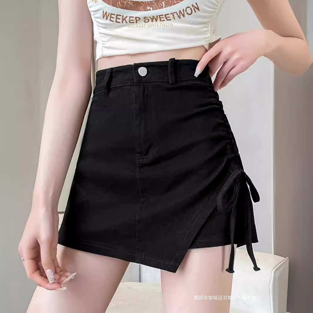 2024春夏の黒い腰がやせて見える半ズボンの女性は、ひものジッパーのa字を身に着けてセクシーなホットパンツを着ている