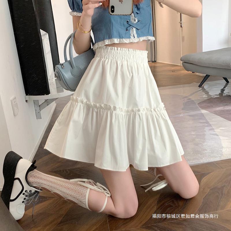 白い半身のスカートの女性の春夏2024の新型は腰を緩めて股を覆って痩せている中の長いタイプのケーキのスカートの傘のスカートのinsを現します。