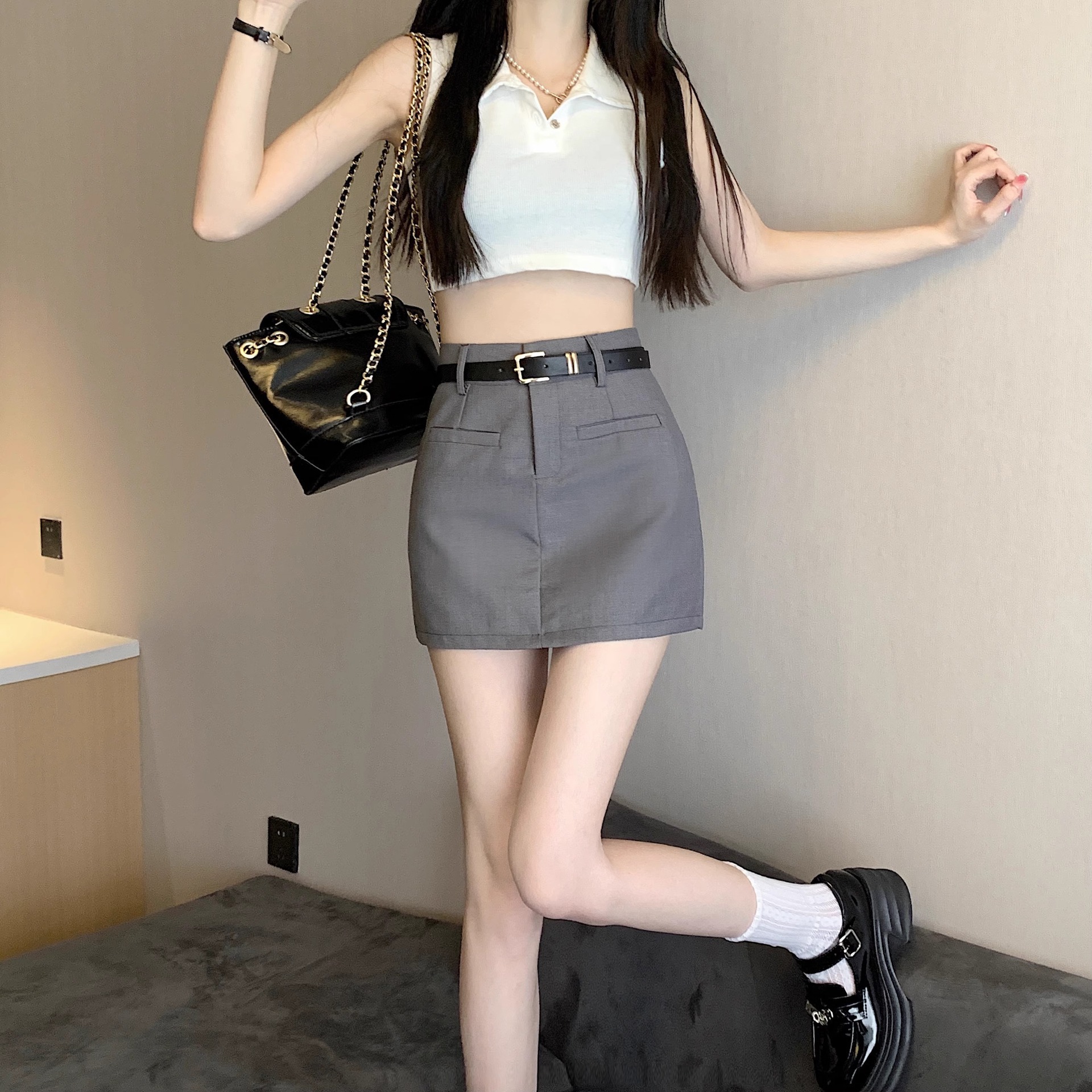 小衆学院スーツスカート女夏2024新ハーフスカート一歩スカート高腰痩せa字半身スカート