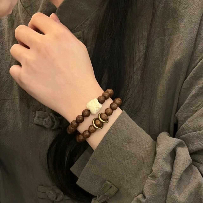 正統創意金糸檀木手串日韓個性カップルレトロ男女アクセサリー仏系民族風ブレスレット