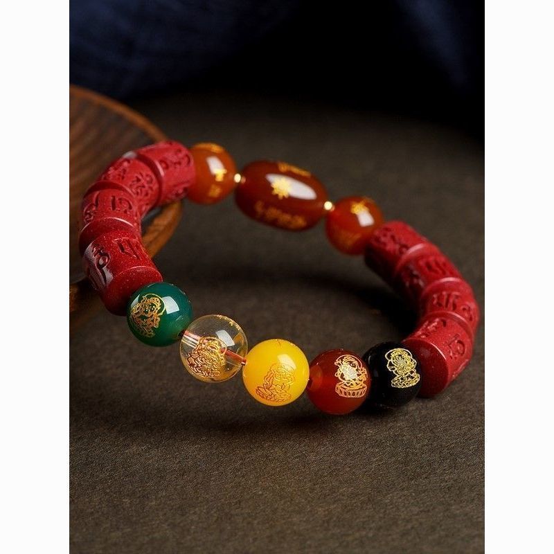 正統【鑑定証書】公式紫金砂朱砂ブレスレット女瑪瑙五路財神本命仏珠手