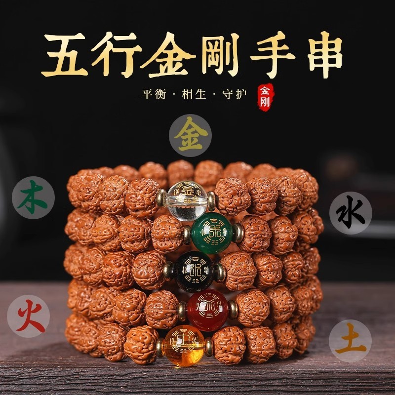正統樹王原種爆肉菩提子小金剛五行手串男士盤は菩提クルミ文を遊んで仏珠を遊びます。