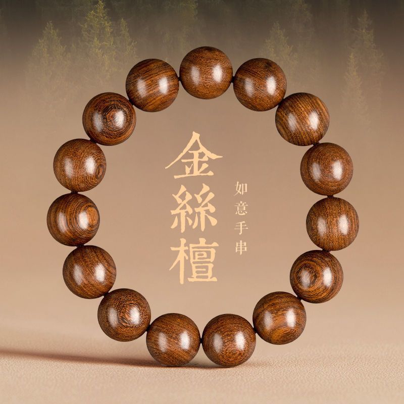 正統正統金糸檀手串老料檀香木烏木質仏珠数珠多環シンプル文遊盤