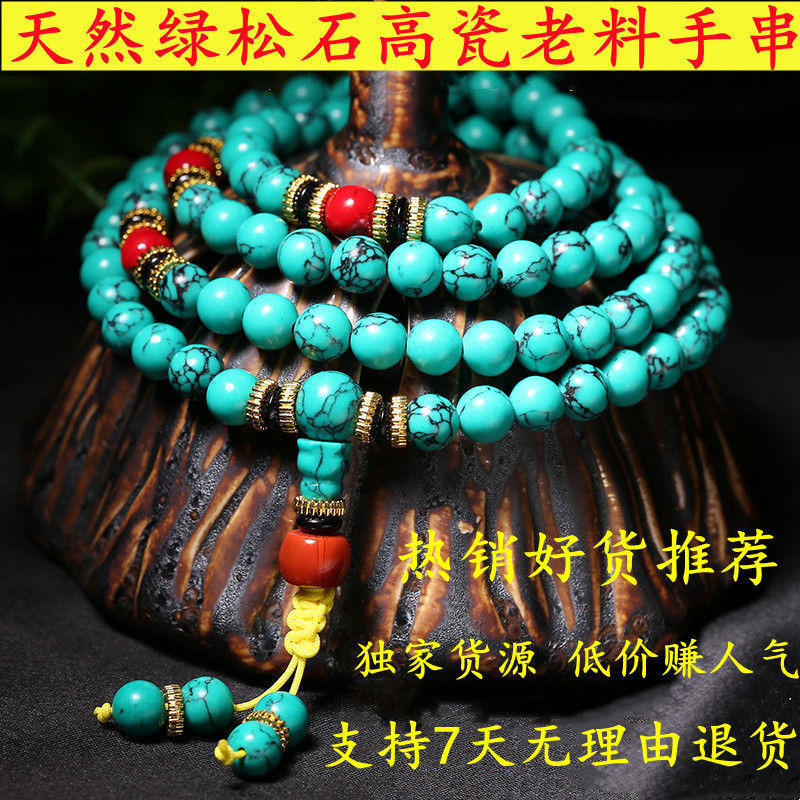 本格的な天然緑松石ブレスレット108個の仏珠青松石原石ブレスレット男女チベット式民族風松石.