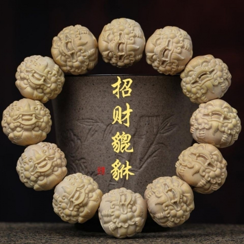 正統霊月閣爆肉樹王小金剛菩提手串花花明獅子クルミ仏珠文は男性を持って遊んでいます。