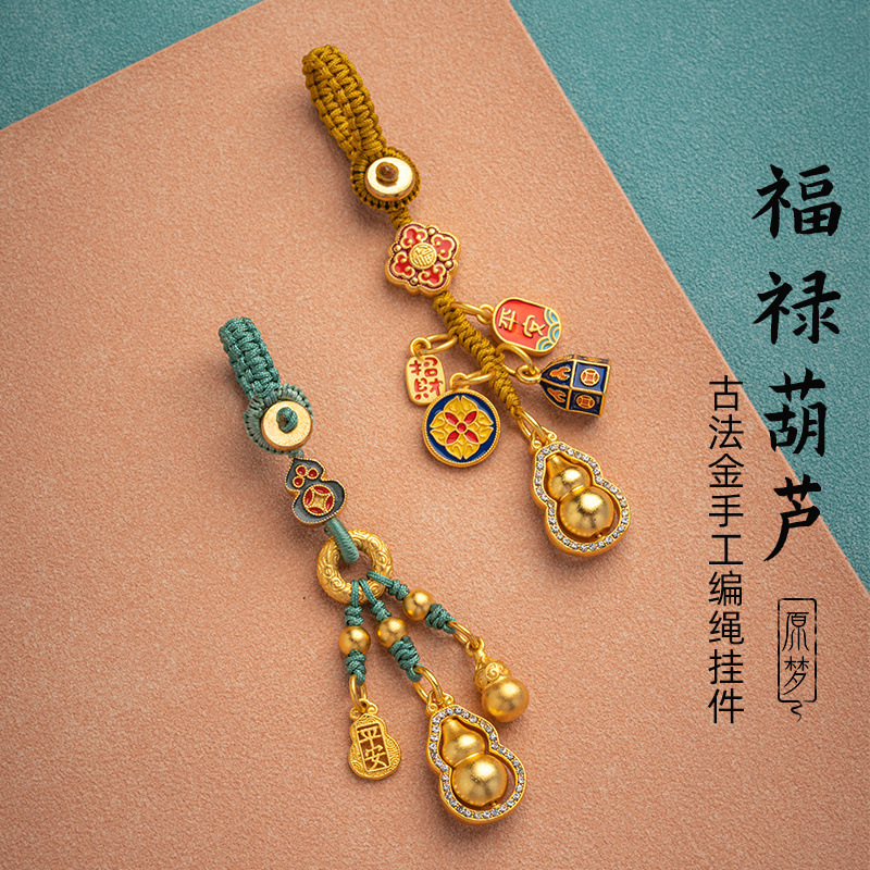 正統の自動車のキーチェーンは古法の金の銅のヒョウタンのペンダントの福禄の平安のキーチェーンを掛けて飾ります。