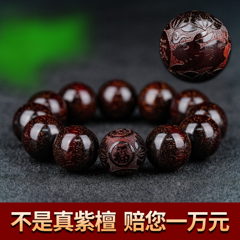 本格的なインドの小葉紫檀手串檀香木十生肖20男士文游盤は仏珠数珠満金で遊んでいます。