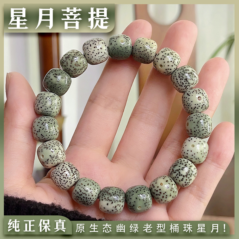 本場原生態海南星月緑陰皮菩提手串単輪男子盤は数珠を使って柔らかい仏珠手を囲んでいる