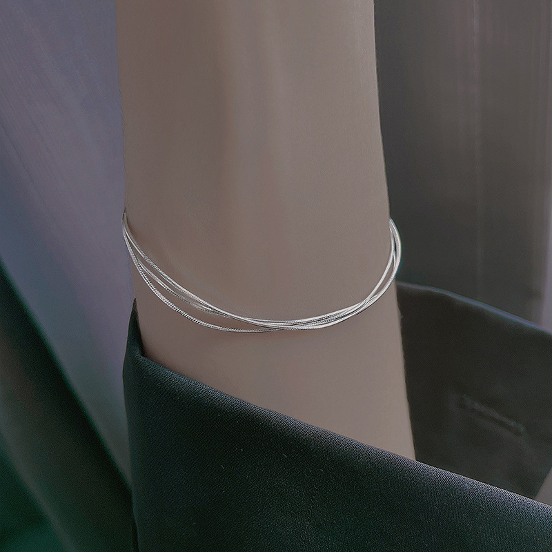 本場925純銀三層蛇骨ブレスレット女性大衆デザイン高級感手環冷淡風起爆手飾り202