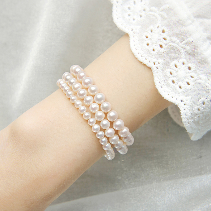 本場天然無核淡水真珠弾力ブレスレット強光4 ~ 7mm民族風オリジナル手串diy散珠軽
