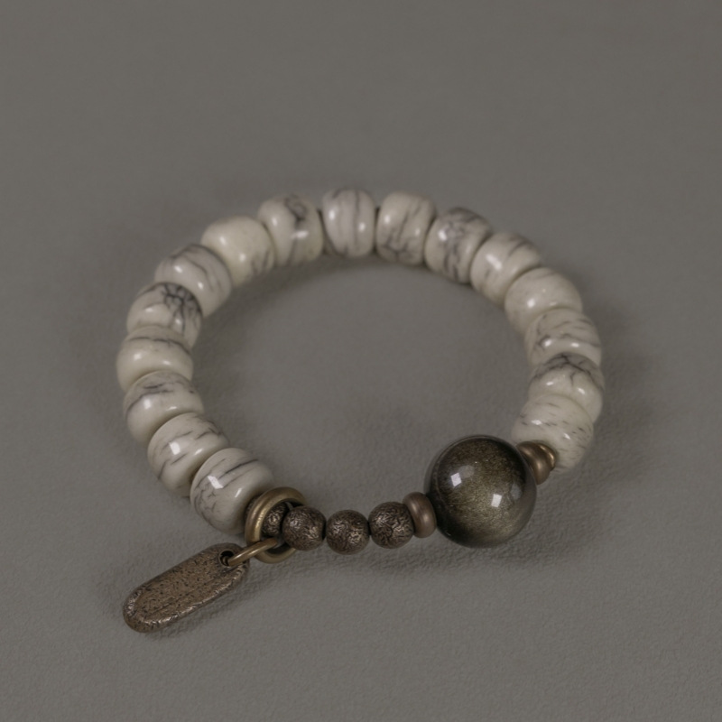本格的なオリジナルの復古は古いタイプの玉の牛の骨のブレスレットの女性の個性の設計をします。