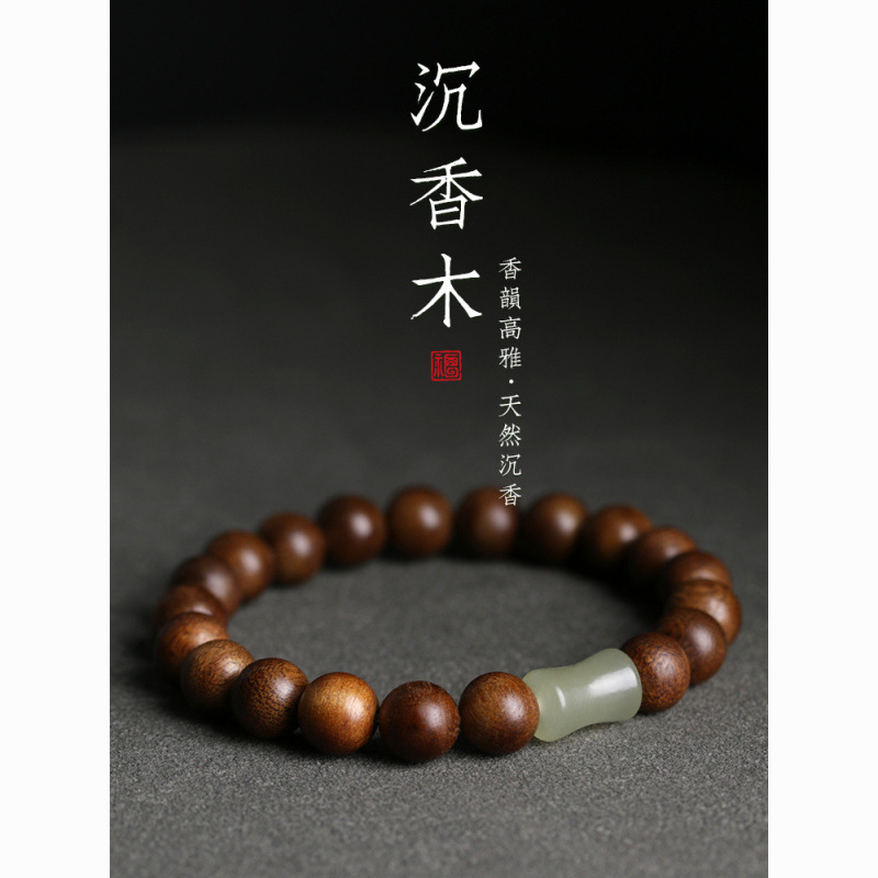 正統8mm沈香木手串男女円珠単輪と田玉節高昇回転珠チベット式文芸範