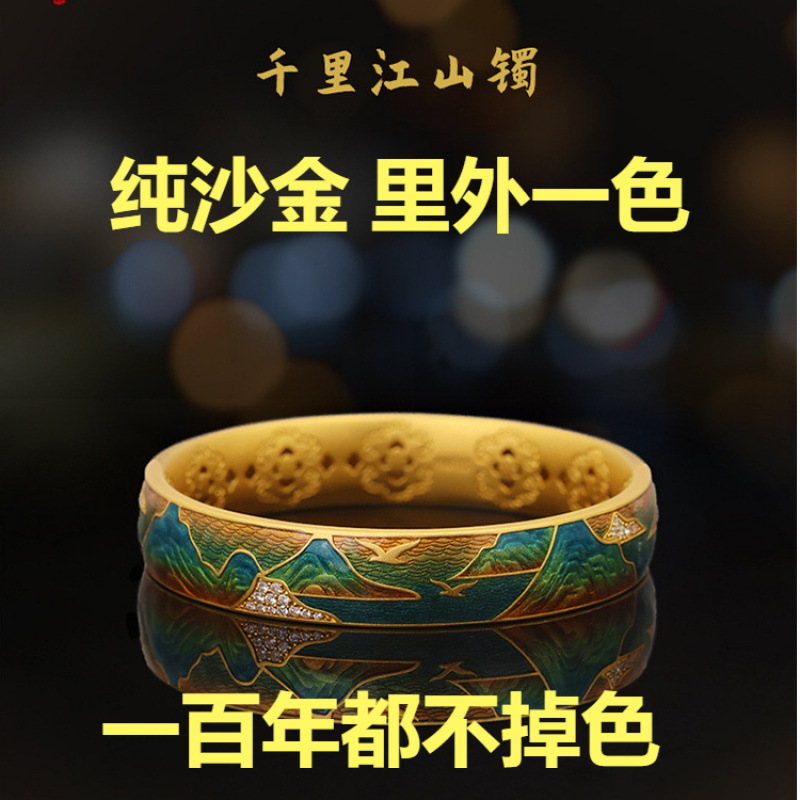 本場の新型ベトナム沙金不色江山宮廷金色ブレスレットエナメル古法気質小衆新年好礼