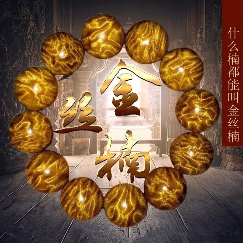 本場【満水波】金糸楠木2.0仏珠手串沈木水波影男女金仏珠108本手
