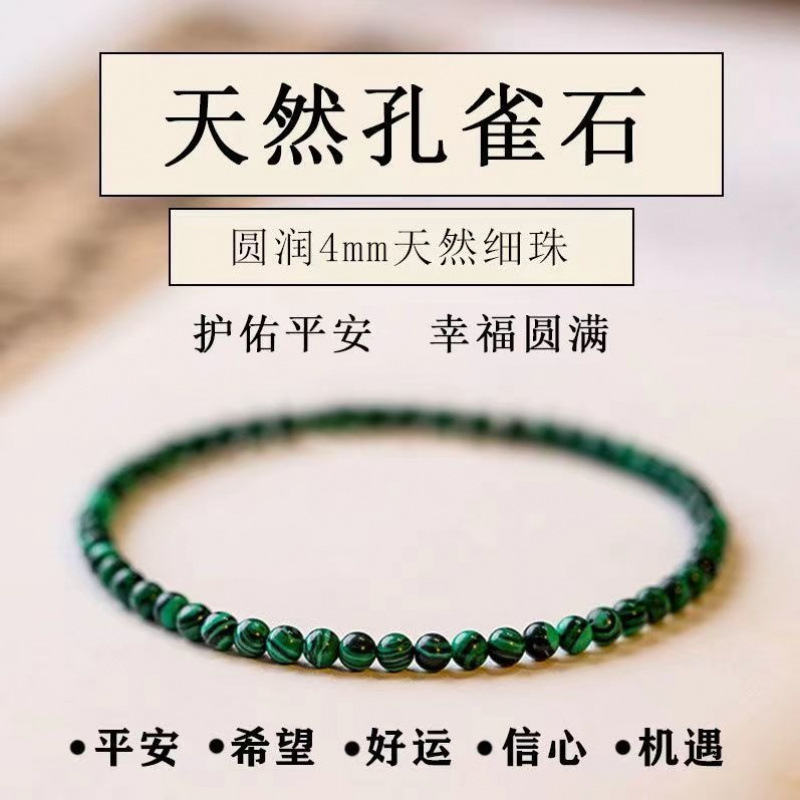 正統国潮シリーズ ~ 原石緑孔雀石ブレスレット女極細単輪小水晶宝石手串ins ......
