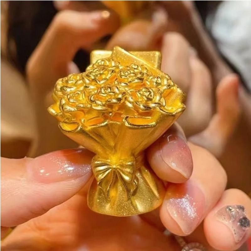 本格的なレトロな黄金色のバラの花の置物2024年の新型の爆発的なデザイン感はバレンタインデーを飾って彼女に送ります。