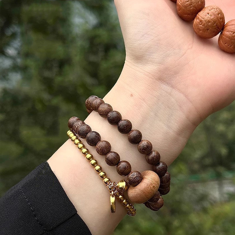 本格的な歳月の _ _ 生香金糸中国式国風デザインレトロブレスレット檀木パンリング手串手