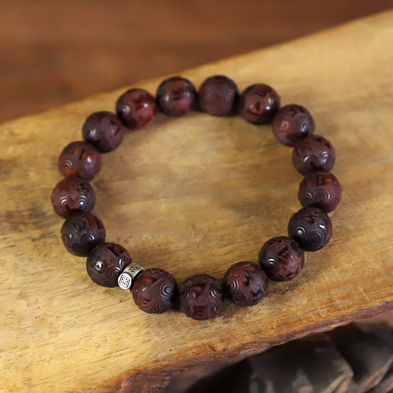 本場天然原木多宝珠手串精工刻牛転乾坤黒檀花梨紫檀男女カップル手