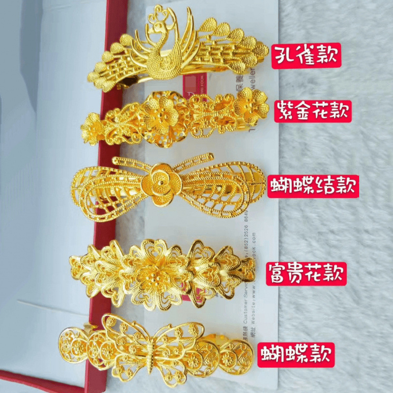本格的な雲南沙金アクセサリーは金髪をまねて孔雀の髪を挟んで女性のファッションの髪飾りの黄銅の金メッキの髪を挟んで卸売りします。