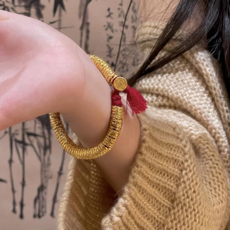 本格的な砂金の手のハンマーの手の串はブレスレットの女性の国風の高級な編み縄insネットの赤い爆発の金を巻いて久しいです。