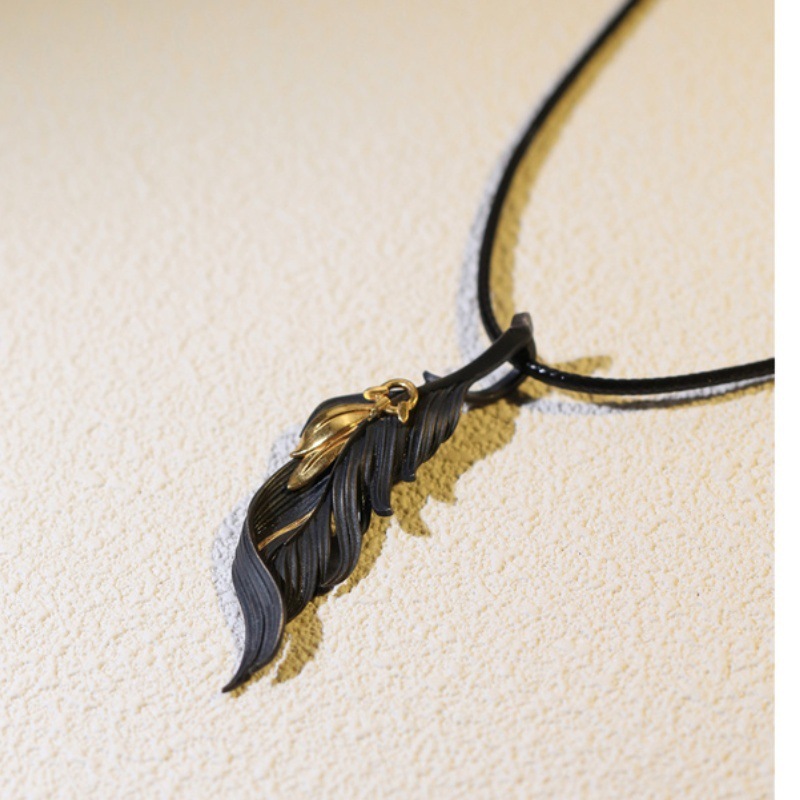 本格的な黒金の羽のネックレスの男性の潮の高級感のデザイン感の小さい衆のinsの高級感の金色のペンダントは軽くて贅沢です。